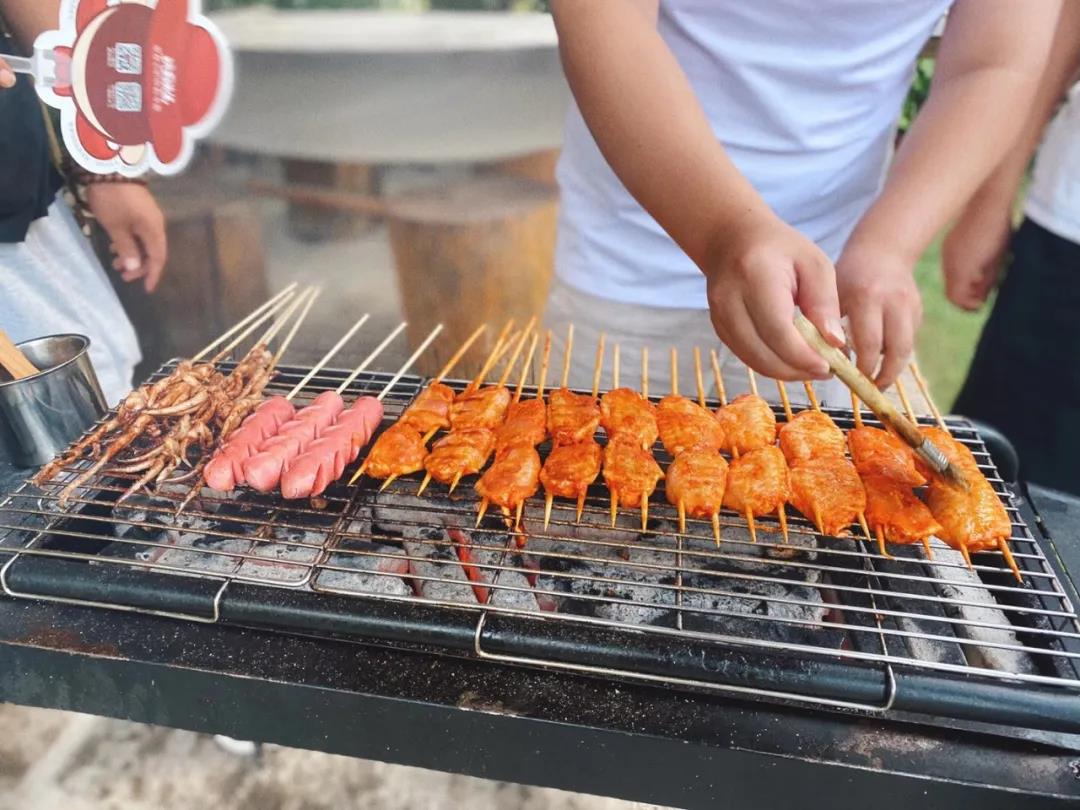 打鬧說笑,好不熱鬧,一起享受勞動的成果。